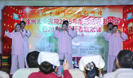 王培安院长说,医院2015年所取得的各项成绩离不开全院干部职工的努力,谨代表院领导班子对全院干部职工表示衷心的感谢。新的一年,医院将继续全面贯彻落实医改精神,以迎接、开展等级医院评审、大型中医医院巡查活动为契机,通过实施精细化管理、全成本核算、优质诊疗服务为抓手,加大学科建设、人才梯队、科研教学工作力度,加快推进门诊综合楼改造工程和分院建设工程,实现医院综合管理、医疗内涵质量、临床技术水平、科研教学能力、优质服务水平不断提高,促进医院科学发展、平稳发展、快速发展。2016年,是充满希望与挑战的一年,全院干部职工要抓住机遇、应对挑战,创新驱动、和衷共济,共逐中医梦,再创新辉煌!