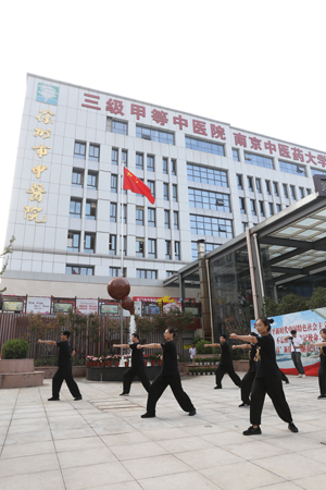 康复医学科的医师团队表演了一套刚柔相济、医武结合的《杏林武韵》。这套健身拳术由少林拳、岳武移、八卦太极拳三套功法组成,尽显少林拳的刚健有力、朴实无华,岳武移八段锦的动静相兼、形气神合一,以及八卦太极拳的刚柔相济、行云流水。整个表演气势磅礴,振奋人心,引来了在场群众阵阵掌声。