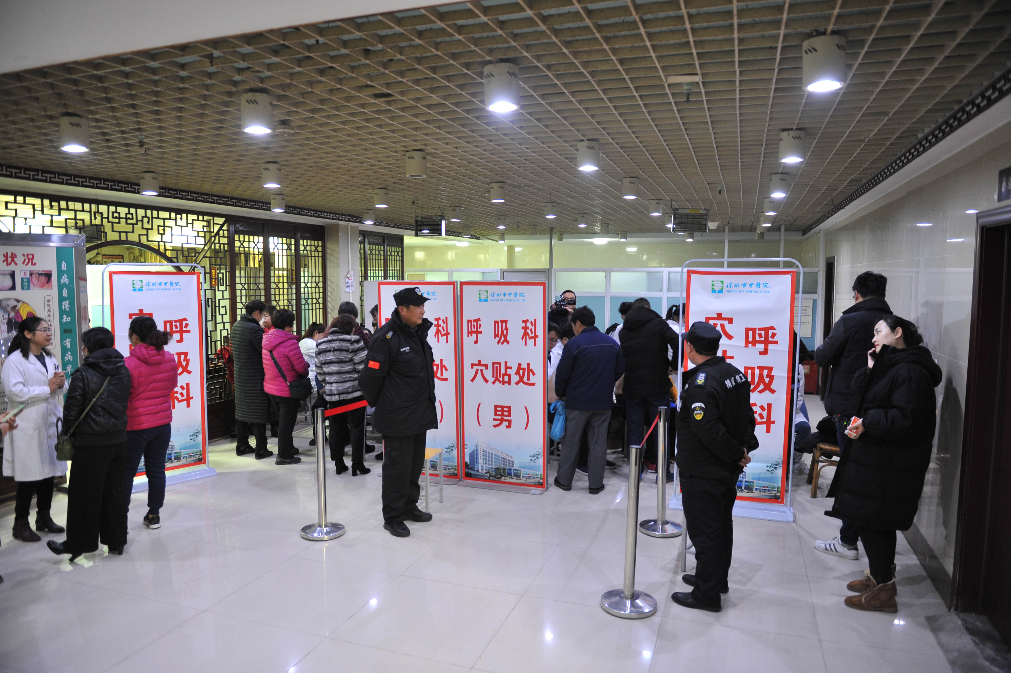 在穴贴现场,医院在各个显眼位置贴心地摆放了“三九穴贴”的介绍和引导标识,为了营造一个良好的就诊环境,特别设置了男女贴敷室、揭穴室,并组织10余名志愿者在各个穴贴点引导患者开票、贴敷。