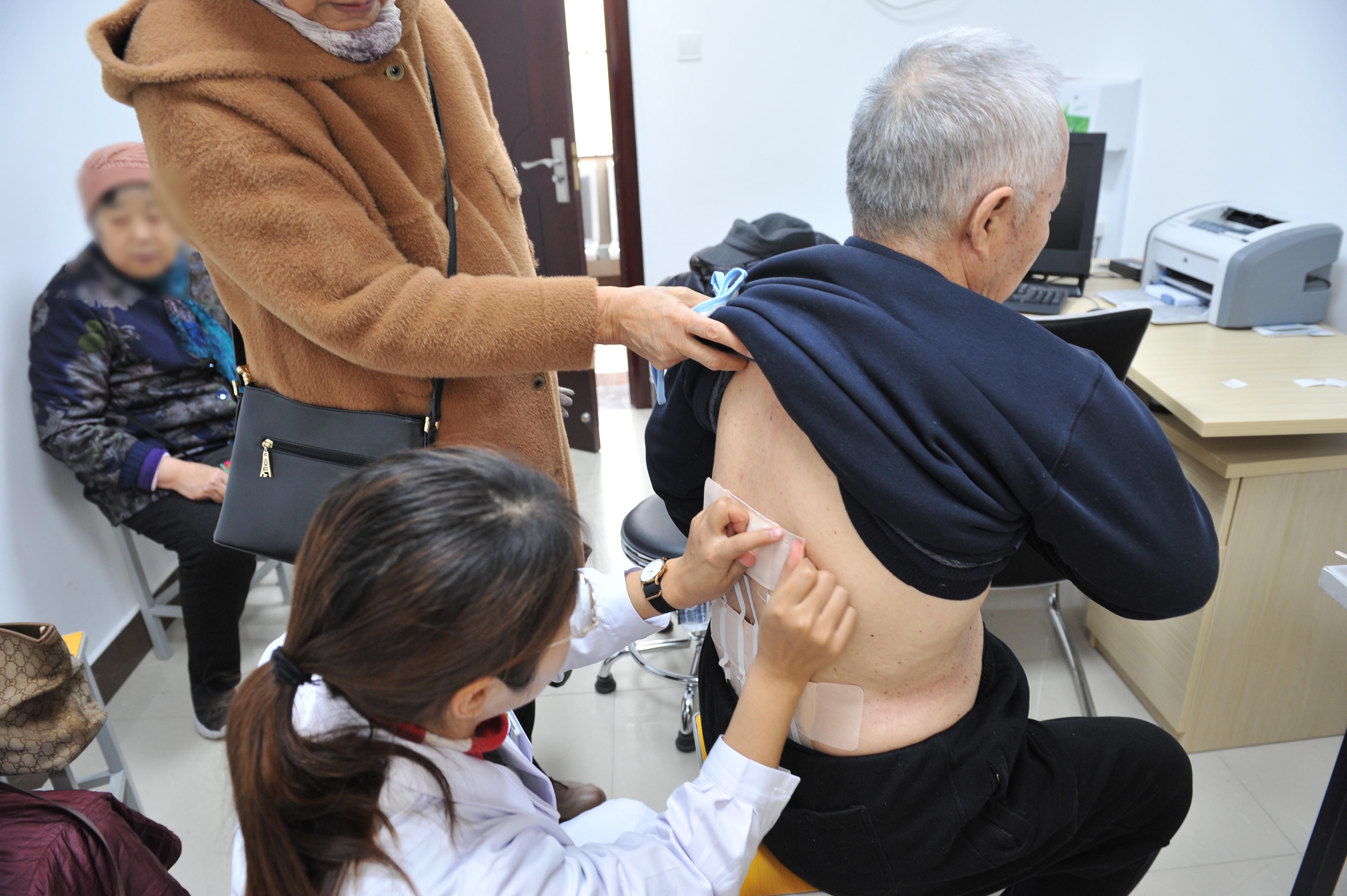 在现场,已经贴完第一贴的张大爷,笑意盈盈,认真听着医生给他讲解穴贴注意事项。他说道:“去年开始有腰腿疼痛的毛病,冬天尤其严重。今年夏天我贴了“三伏贴”,效果不错,疼痛减轻了,所以今年冬天又来贴三九贴治疗”。