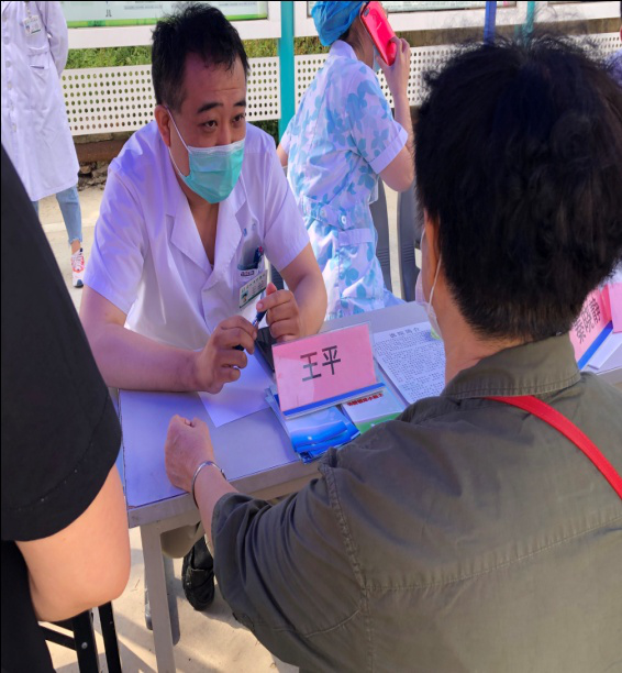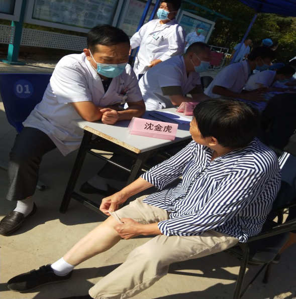 在义诊现场,前来义诊的知名专家教授忙得不可开交,为每一位前来咨询的群众答疑解惑。骨伤科、脑外科、肛肠科主任们耐心地询问病史、倾听每一位群众的主诉并进行查体、阅片,给出相应的诊疗意见。