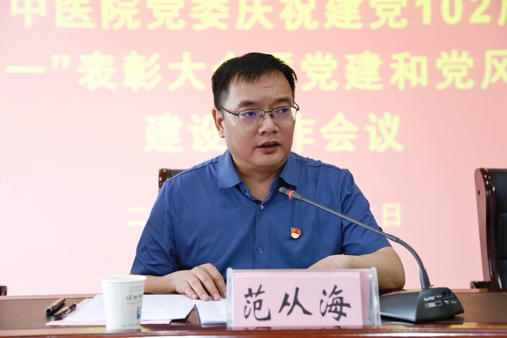 范从海书记回顾了建党102周年来中国共产党团结带领中国人民不懈奋斗的光辉历程,总结了市中医院党委近年来在完善党建工作体系、强化思想理论武装、夯实党建工作基础、深入全面从严治党、彰显先锋模范作用等方面取得的成绩,对涌现出的先进个人和先进集体予以充分肯定,向辛勤工作在我院医疗、护理、教学、科研、管理、后勤等岗位的广大共产党员以及离退休党员同志们致以节日的问候。