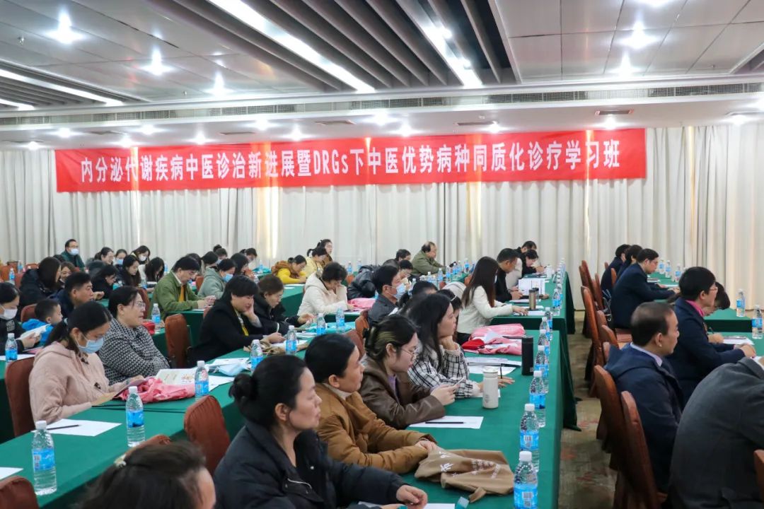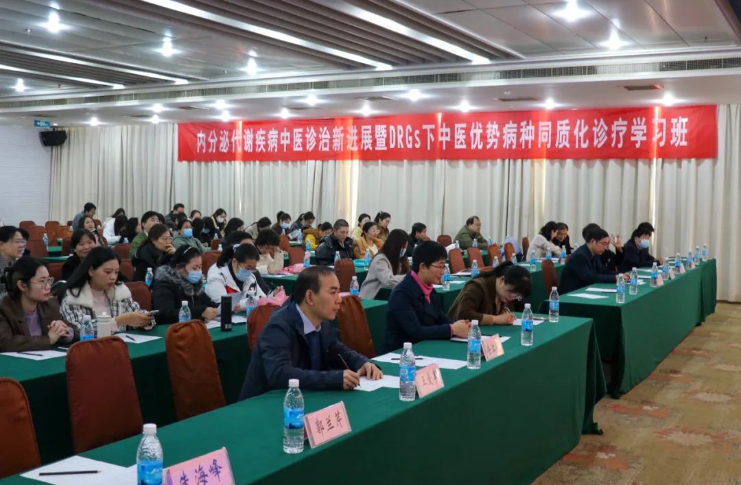 本次继教班是疫情后叠加DRGs形式下举办的首次线下现场学术会议。本着“学术引领,突出中医特色,服务临床,践行新医改,关爱患者”为主旨;学习班邀请省内外知名专家:世界米优最新版本联合会糖尿病分会会长赵进喜教授、中国中西医结合学会内分泌专业委员会主任委员魏军平教授、中国中西医结合学会糖尿病肾病专家委员会主任委员余江毅教授,湖北省中医消渴病专业委员会主任委员喻秀兰教授就内分泌代谢病诊治的热点、难点问题及最新进展进行专题学术报告,并就DRGs下如何推进中医优势病种同质化诊疗促进内分泌学科建设发展、提高本地区医师在内分泌代谢病防治方面的综合素质和专业能力开展了充分热烈认真的学术研讨。