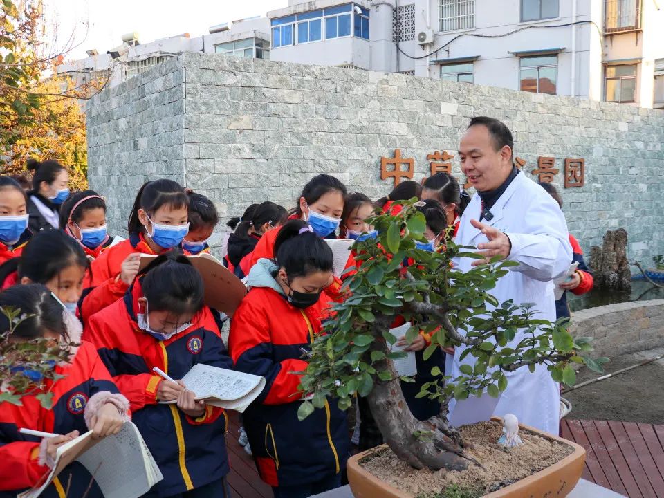 在中药材盆景展品区,同学们看到了各种中药材盆景,包括侧柏、枸杞、黄芪等。药学部李江主任介绍道,这些盆景不仅具有观赏价值,还可以让大家近距离观察中药材的生长状态,加深对中药材的认识。