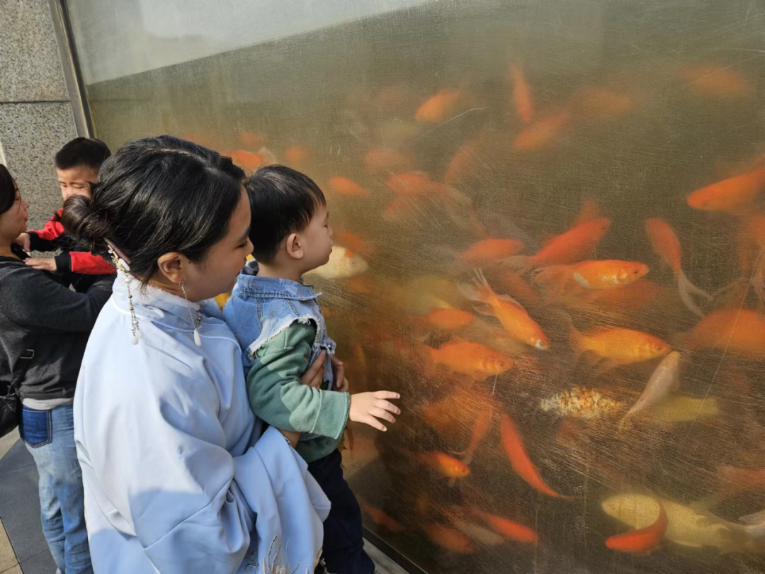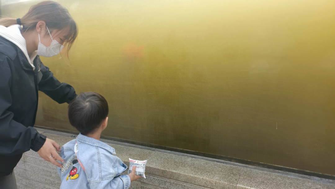 秋天的微风轻柔拂面,迈着轻快的步伐,"走走走走走,我们小手拉大手",哼着欢快的小曲,治疗师和孩子们及家长来到了秋游的第一站,美丽的云龙湖沉水廊道。孩子们迫不及待地要与鱼儿来一次亲密接触!瞧,他们看得多仔细。