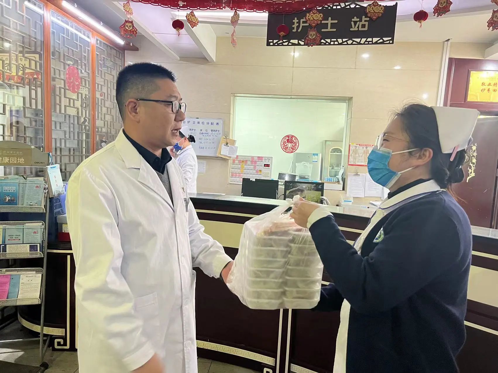 春节看望慰问在岗医务人员和住院患者是市中医院坚持多年的传统。为让坚守在院的医护人员和不能回家过年的患者感受到浓浓的年味儿,大年三十下午,医院领导还为每一位值班人员和住院患者送去香喷喷的水饺,让大家在医院过年也能感受到“家”一般的温暖。