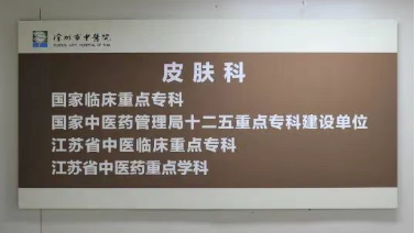 皮肤科开设普通门诊、专家门诊、3个专病门诊(荨麻疹、痤疮、毛发疾病)、皮肤外科门诊、医学美容门诊、中医特色治疗中心、激光诊疗中心、紫外线光疗中心等,拥有各种诊疗设备70余台,年治疗量20万余人次。病房开放床位40张,设有中药药浴室、中医特色治疗室、临方调配室、光疗室及换药室等,病房规模位居江苏省综合性医院皮肤科首位,擅于治疗重症药疹、中毒性大疱性表皮松解症、重症多形红斑、红皮病、大疱性皮肤病等各种皮肤科疑难危重病例。