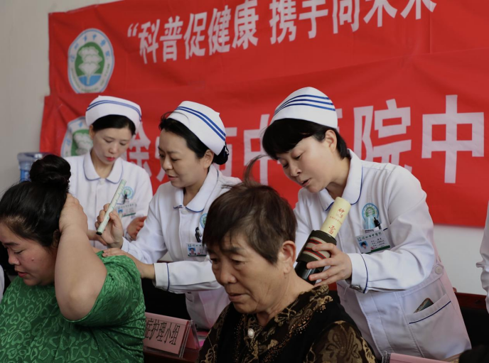 中医护理专科小组组长、大外科科护士长王敏带领成员宋婀娜、董莎、周红、刘静、佟亚等护士长,针对社区居民的一些疾病症状,现场为居民进行了雷火灸、耳部全息铜砭刮痧、腕踝针、循经拍打操、耳部放血、耳穴贴压等中医护理适宜技术。通过发放精美的健康宣传资料,对居民进行科普宣传和健康教育,手把手地传授一些日常保健和疾病预防的中医小妙招,让居民们在享受医疗服务的同时,也感受到中医文化的奥妙和博大精深。
