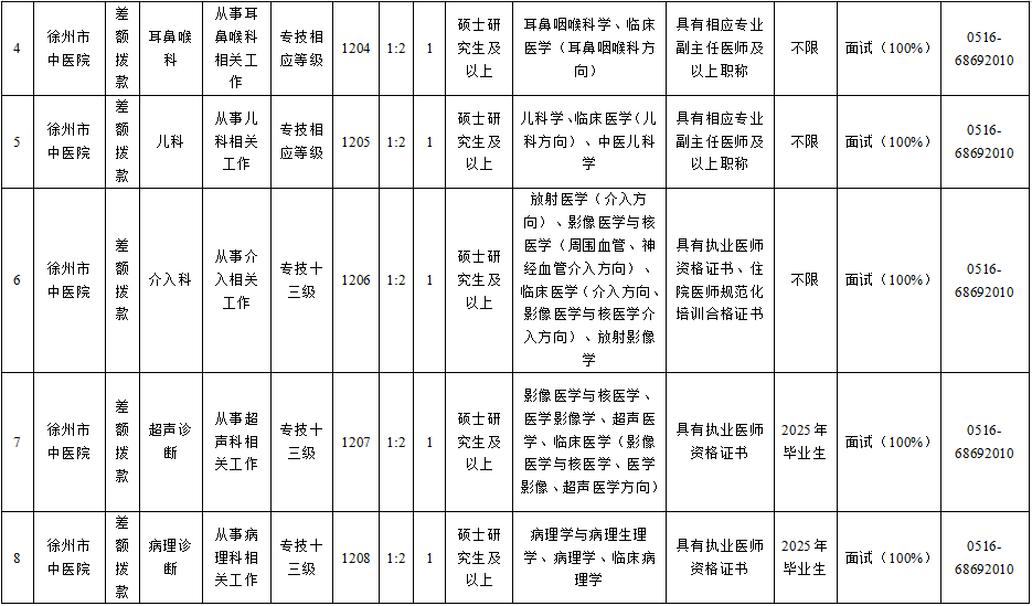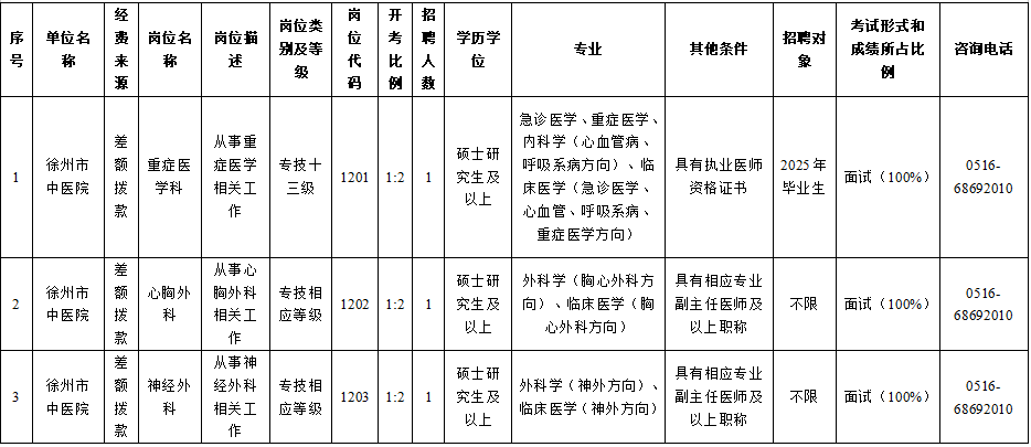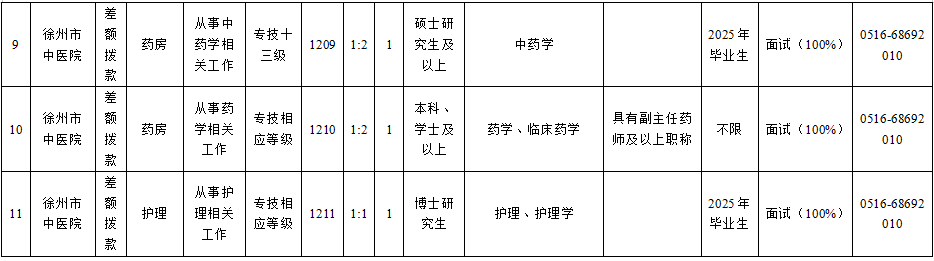 2025年徐州市事业单位公开招聘医务人员岗位表