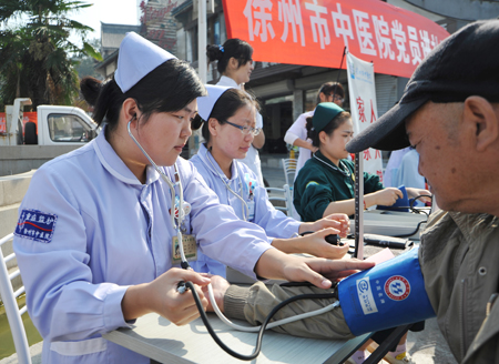 活动现场,市中医院来自心血管、脑病、呼吸、内分泌、消化、风湿等专业的专家们根据前来咨询居民的不同病种特点,为他们讲解发病原因、预防措施及指导用药,并告知大家健康的生活方式。医务人员免费为居民测血压,并提供推拿按摩等现场体验活动。现场量完血压的刘大爷乐呵呵地说:“现在生活条件提高了,健康意识也提高了,知道疾病要早发现早治疗,有时候这里不舒服那里不舒服,就是怕麻烦怕花钱不愿往医院跑,这次中医院专家来到社区做免费的义诊咨询,拉近了我们的距离,多谢你们了!”活动期间,医院共发放健康教育类院报《徐州健康》、中医养生保健手册及各种健教处方1000余份,接待就诊咨询群众200余人次。