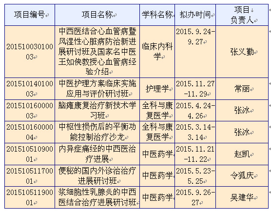 近日,徐州市卫生局发文:《关于公布2015年度徐州市继续医学教育项目的通知》,除本次公布的获批项目外,原则上不再受理临时性市级继教项目的申请。要求各单位加强对继续教育项目的管理,严格执行《关于加强我省继续教育学分管理工作的通知》(苏卫办科教[2014]9号)相关规定,不得随意更改项目编号、名称、内容和学时,市级继教项目学分授予,举办1天授予‖学分不超过3分,1.5天不超过5分。我院七个项目获得立项,分别是: