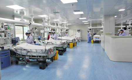 新年伊始,医院重症监护病房(ICU)和神经内科重症监护病房(NICU)相继改扩建完毕并投入使用,共设置30张病床。配置了医用多功能集成悬挂装置——干湿分离桥式吊塔,氧气、空气、吸引、强弱电、网络输入终端配置在医护人员抬手可及的塔体上,配备了可升降调节的医疗仪器监护平台,提高了治疗空间,提升了医护人员的工作效率。新添置了具有国际先进水平、高效杀菌、高效降解、更加环保的的等离子空气消毒机,在对空气消毒的同时,也可降解空气中的有害、有毒气体,显著改善了重症病房的住院条件。病房硬件水平的改善有效提升了医院急危重症的收治能力。