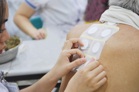 中医专家特别提醒:敷贴治疗可选择每年夏天初伏、中伏、末伏贴敷,夏季贴敷4次,每次间隔10天,一般连续治疗3年以上者效果越来越巩固。注意贴敷时间成人一般在20-30分钟左右,或遵医嘱,小儿及敏感者应酌减。如果患者属体质敏感者,或既往用药曾出现起疱等反应,应缩短贴药时间。药物贴敷后,多数患者会出现麻木、温、热、痒、针刺、疼痛等感觉,也有部分患者无明显感觉,这些均属于药物吸收的正常反应。如果感觉特别剧烈、达到难以忍受的程度,请患者及时取下药物,用清水冲洗局部。