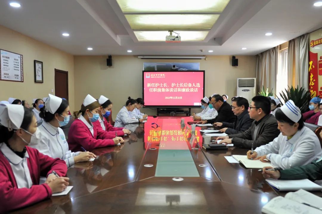 12月22日,我院召开新任护士长、护士长后备人选任职前集体谈话和廉政谈话会议。党委书记范从海同志,党委副书记、院长殷海涛同志出席会议,党委副书记、纪委书记陈勇同...